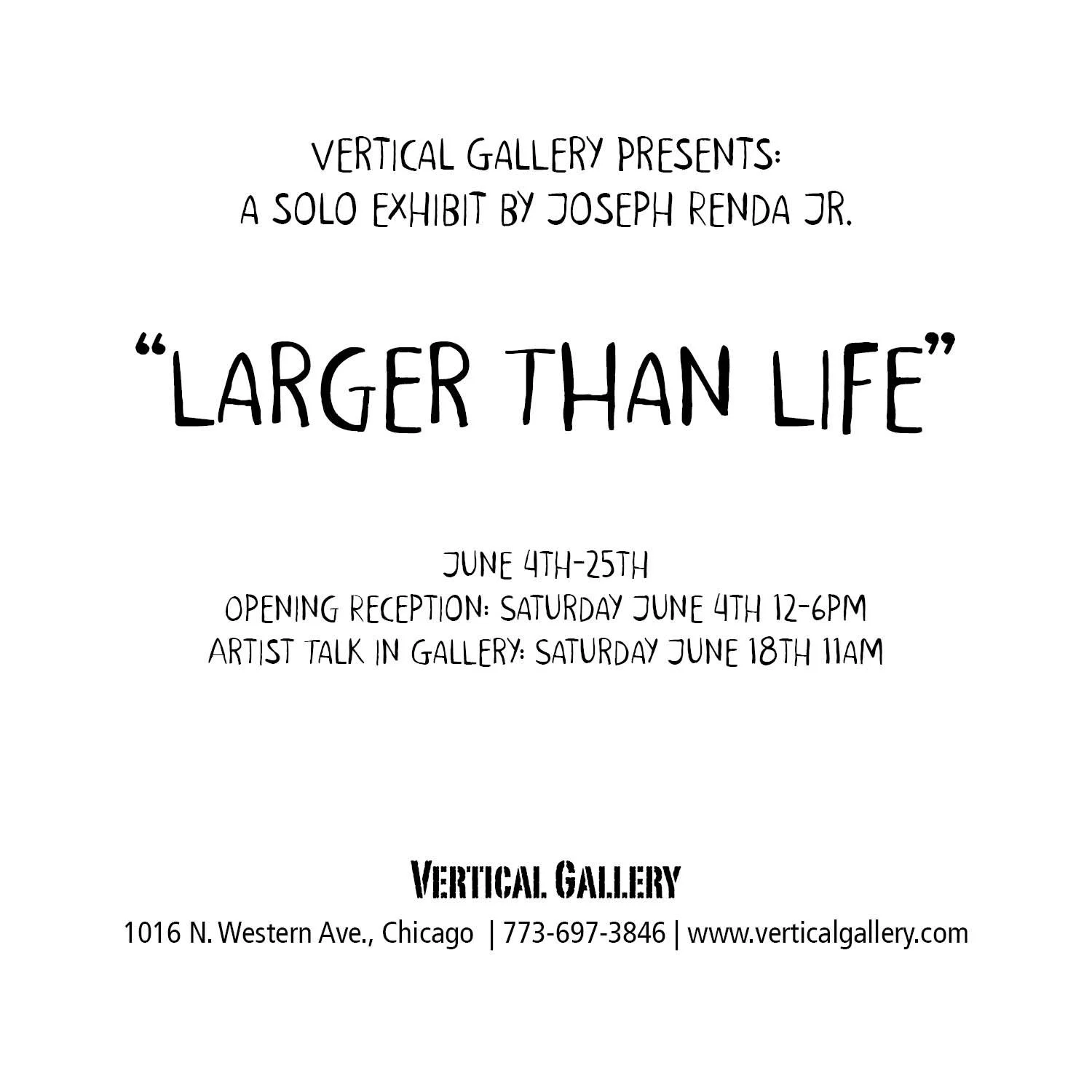 Vertical Gallery Presents “Larger Than Life”, Joseph Renda Jr’s second career solo exhibit!